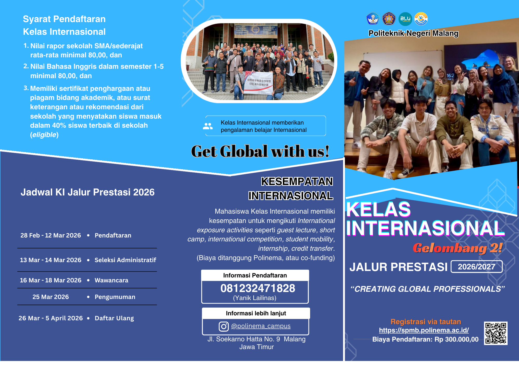 Raih kesempatan bergabung dengan Politeknik Negeri Malang melalui Program Kelas Internasional Jalur Prestasi Gelombang 2